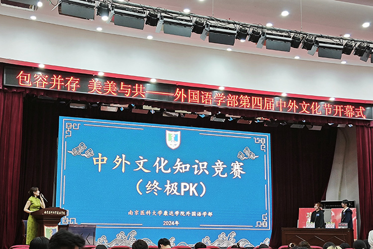 4月24日晚,“包容并存 美美与共”外国语学部第四届中外文化节在医政楼报告厅开幕。党委副书记、副院长王磊出席开幕式并致辞,教务处、学工处和医学信息工程学部、人文与管理学部相关负责人出席开幕式并观看了中外文化知识竞赛活动。